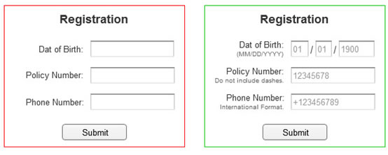 建議顯示提示用戶輸入格式的字段,減少用戶的猜測時間。