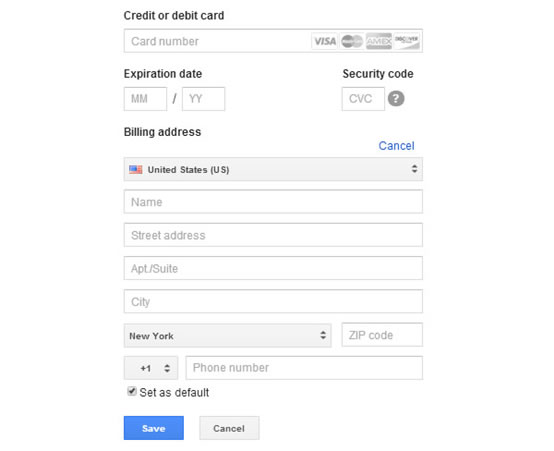 谷歌在用戶為其谷歌錢包添加信用卡時,所用的表單設計就做得非常好。Skype也是如此。