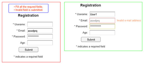 針對這一問題有一個很好的解決方案就是實時數(shù)據(jù)驗證。驗證完畢馬上提醒用戶需要修改。