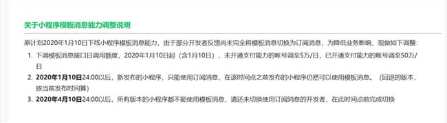 之后,微信又公告了關于小程序模板消息能力調整說明。