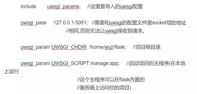 我所定義的為uwsgi_pass,因此,uwsgi中應該定義socket地址,如果定義proxy_pass的時候寫http://則uwsgi中應該定義http地址。