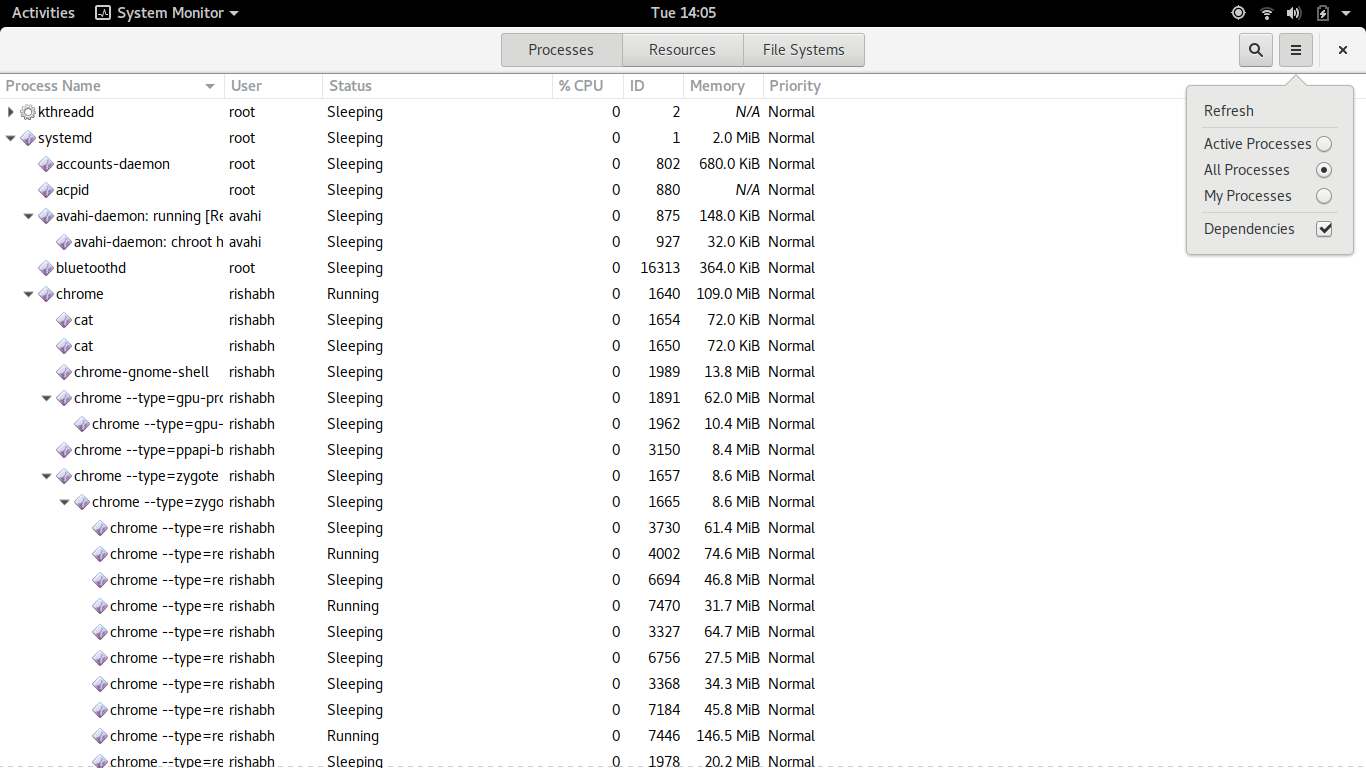 你可以通過(guò) System-Monitor 查看當(dāng)前進(jìn)程。