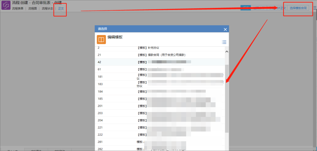 泛微OA系統通過在文檔引擎上傳編輯好的合同模板,建立合同模板庫??蛇x擇相應模板進行在線編輯。