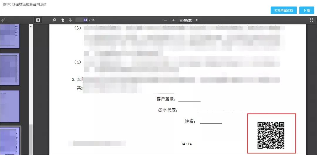 泛微OA系統為每一份合同設置了一個對應的二維碼,法務提交流程后,合同最后一頁會自動插入二維碼。