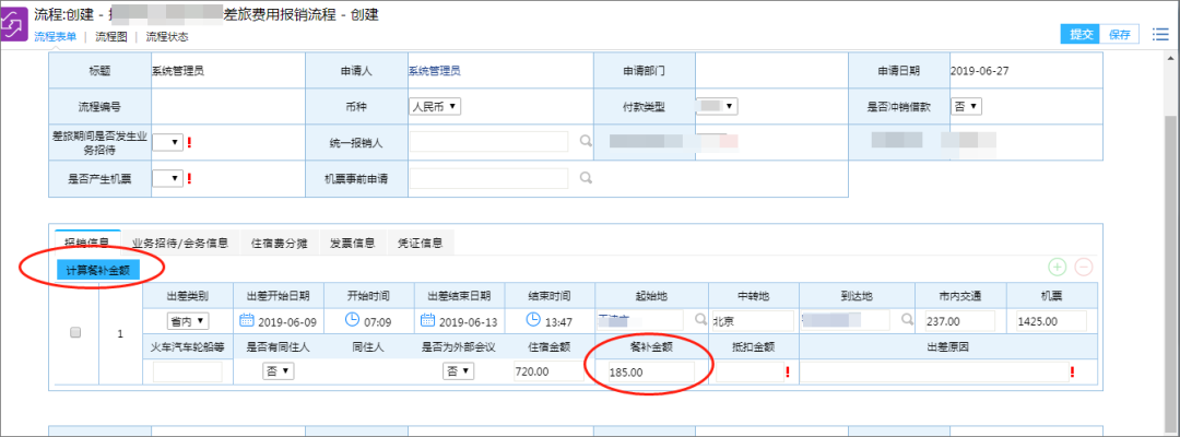 通過建模將各地區標準導入,發起補助申請流程時,可直接引用該地區數據,并且可在表單自動計算餐補金額。