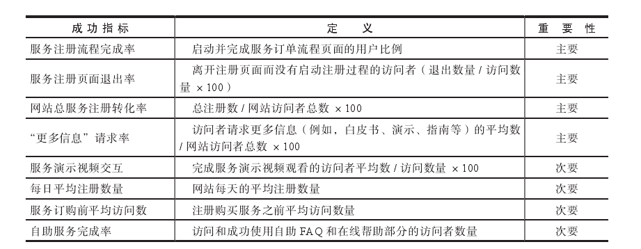 3. 服務(wù)網(wǎng)站成功衡量指標(biāo)這類(lèi)網(wǎng)站雖然類(lèi)似于電子商務(wù)網(wǎng)站,但是它們的重點(diǎn)在于銷(xiāo)售服務(wù)而不是產(chǎn)品,具有不同的成功衡量指標(biāo)。這類(lèi)網(wǎng)站的例子有 Monster.com 和 Constant Contact.com。