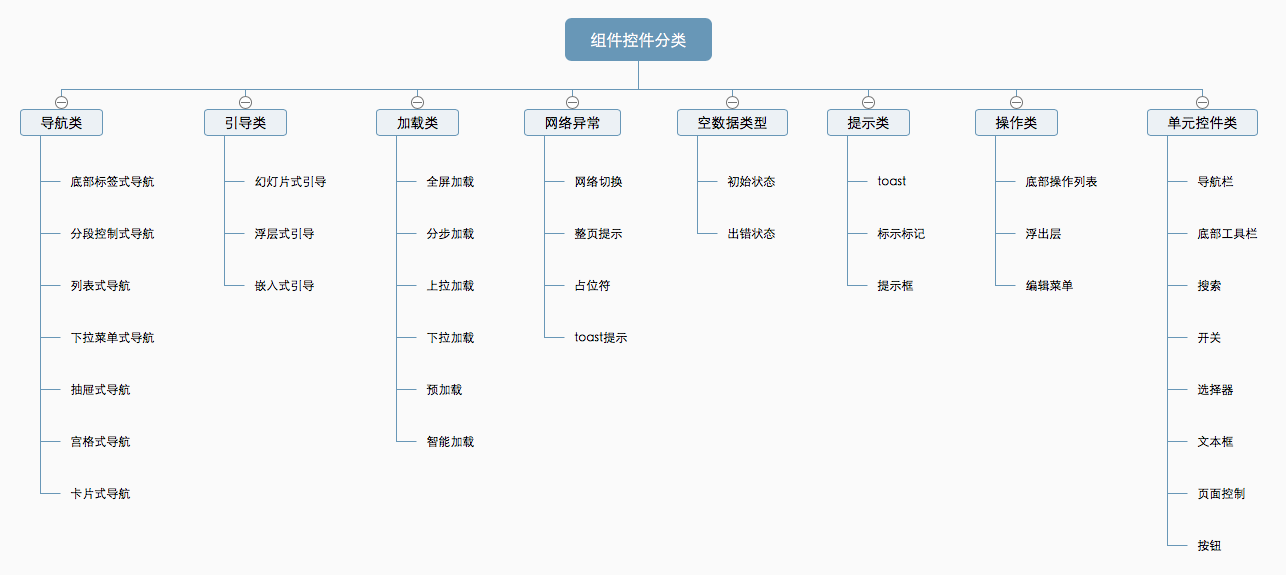 如下腦圖是設(shè)計(jì)規(guī)范的重點(diǎn),這個(gè)是系統(tǒng)的學(xué)習(xí)組件控件和功能分類的目錄。