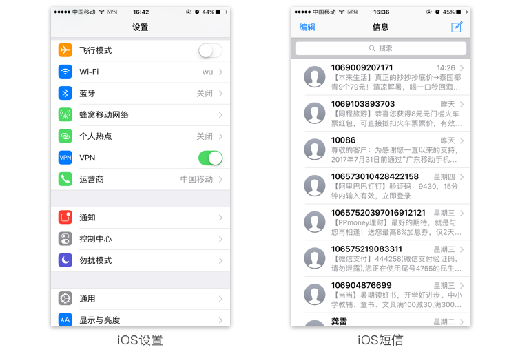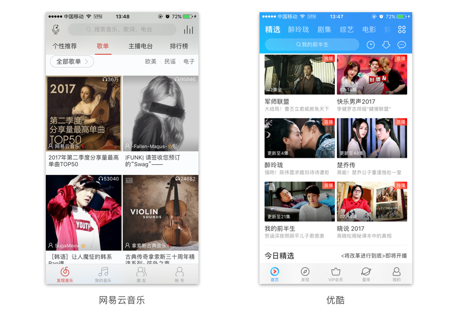 標(biāo)簽式導(dǎo)航有底部導(dǎo)航和頂部導(dǎo)航兩種,底部導(dǎo)航用于全局導(dǎo)航,頂部導(dǎo)航用于二級導(dǎo)航(遵循Material Design規(guī)范的除外)。