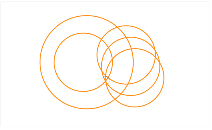 繼續加入2個圓C,其中一個圓與之前的圓相交。這一步所繪制的是雞身的部分。