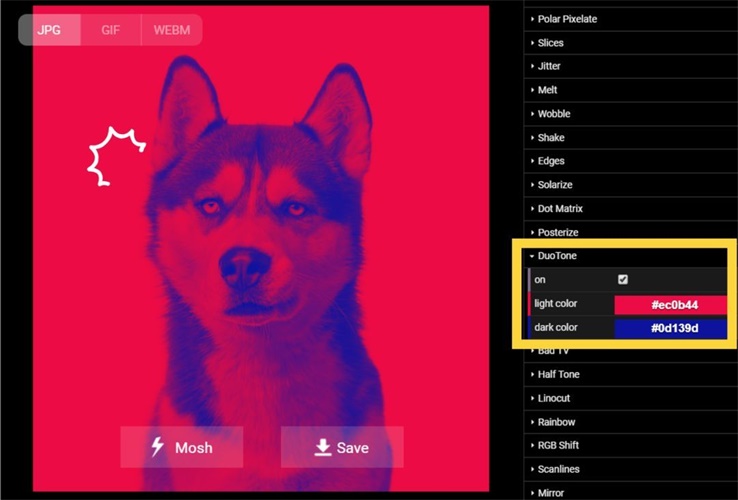 在 PhotoMosh 的特效列表中,你會發現一個熟悉的名字:Doutone。