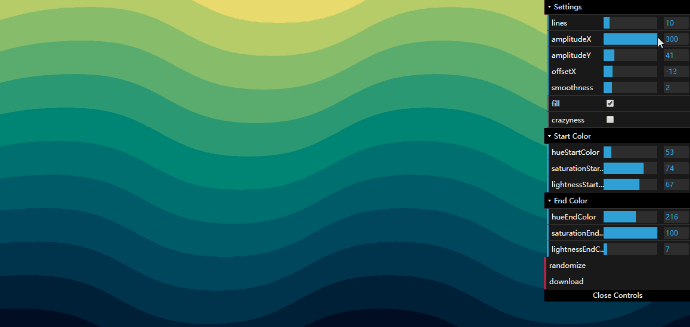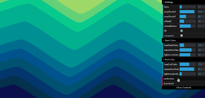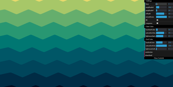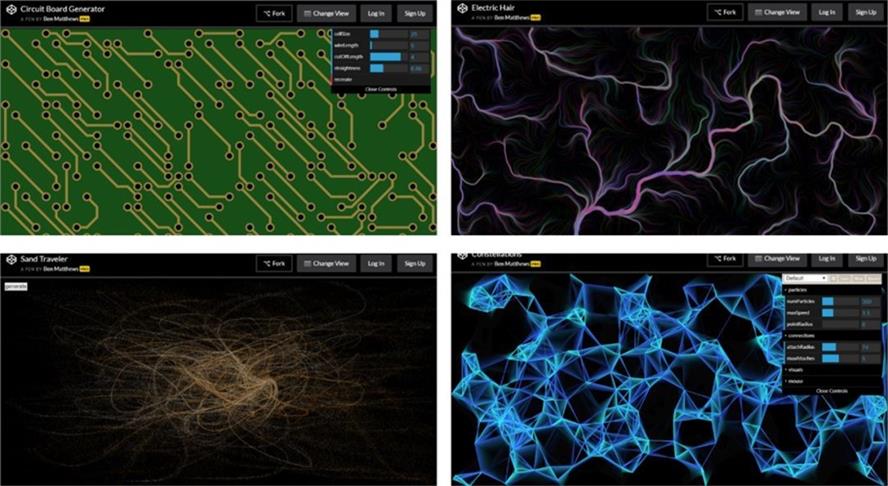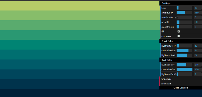 這是我在 CodePen 社區上偶遇的一個生成器,雖然它只是工程師 Ben Matthews 的一個編程練習,但我們可以利用它生成各種各樣的炫彩背景。毫無操作可言,點擊鼠標就隨機生成一張圖,就這么簡單粗暴。