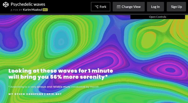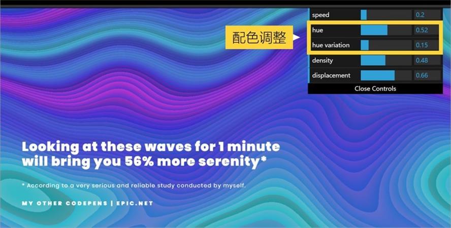 看這不正經的網址就猜到,這又是 CodePen 上另一位大佬的編程練習。他說盯著這些流動的漸變層看一分鐘就會有凝神靜氣的奇效,但為什么我越看越騷動。
