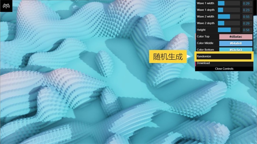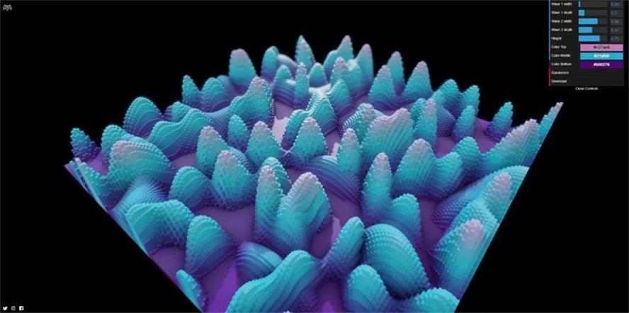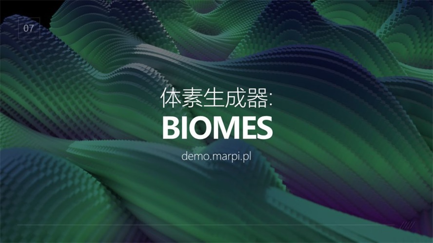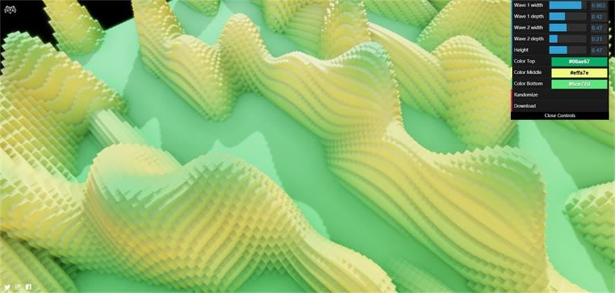 你能想象到封面這個背景也可以一鍵生成么?用的是國外 WebGL 大神 Marpi 的一個工具——Biomes,可以隨機生成抽象的體素地形。