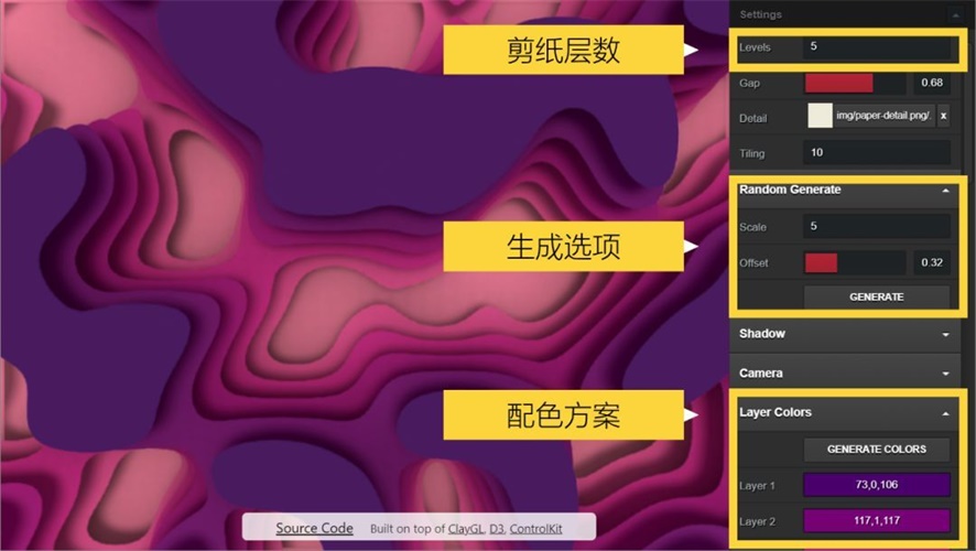 本以為這已經是最快的生成方式了,直到我在 CodePen 社區上遇到這個神器,居然直接用鼠標拖拽就能搞定。想要多少層隨便點: