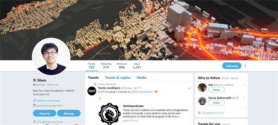 @pissang 其實是百度 ECharts 團隊的其中一位大神,平時主要活躍在 Twitter 以及 GitHub ,經常會發布各種各樣的小玩具,有興趣的同學可以關注一下。