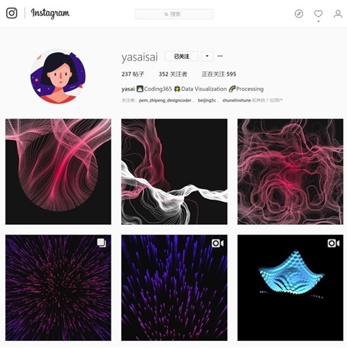 夢想成為一名 processing 大神的亞賽同學,一般活躍在 Instagram,在這你能看到她每天的編程打卡,喜歡她的同學可以關注一下,你會發現會編程的設計師是多么有魅力。