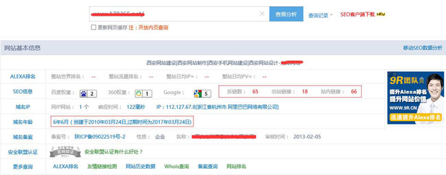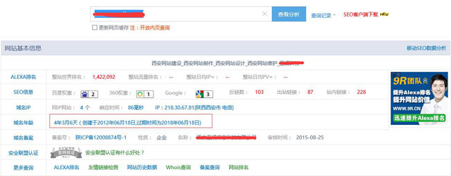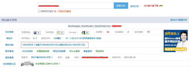 首先我們對比了很多同行業的網站發現一個問題,就是排在前面的網站域名少則五六年 多則十幾年的老域名。下面放幾個截圖為證: