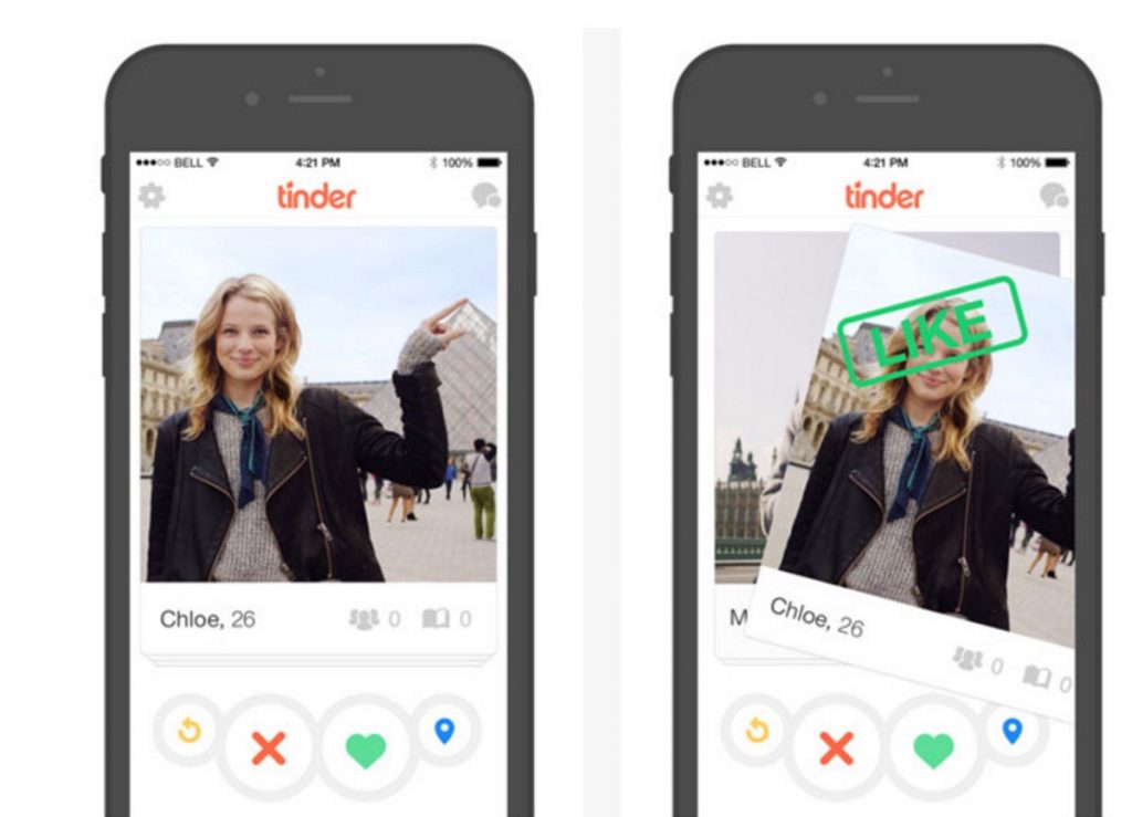 卡片可以使相關內容自然地呈現出來,讓用戶發掘其自身興趣所在。下圖中 Tinder 的卡片,向左或向右滑動,系統就會自動推薦可能入你眼的人。
