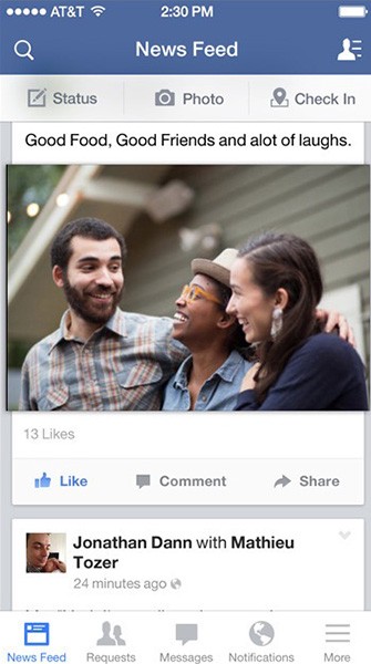 像 Facebook 這類大企業,其采用卡片驅動型的界面用于臺式桌面、手機網頁及 app 客戶端時,卡片布局就被認作設計環節中的核心了。Facebook 充分利用了盒子風格的設計(即卡片——譯者注),將信息歸類,哪怕是在怎么也滑動不到底端的頁面上。