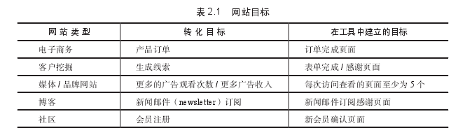 1.網(wǎng)站轉(zhuǎn)化目標(biāo)和成功衡量指標(biāo)類型為了幫助你理解網(wǎng)站的高級轉(zhuǎn)化目標(biāo),表列出了5種主要網(wǎng)站類型的轉(zhuǎn)化目標(biāo)示例。這個表格指出如何在分析工具中建立每個目標(biāo)。