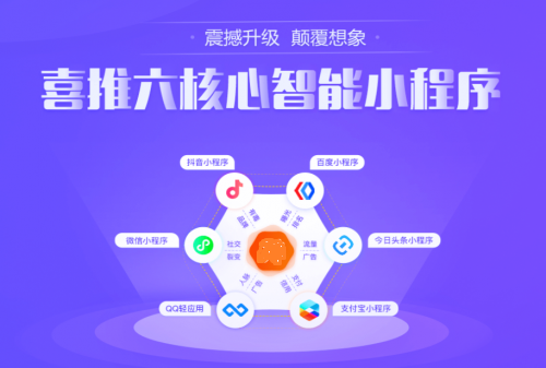 但建設的小程序過多,不僅會增加研發成本,還會增加運營難度。為此,喜推科技推出了高度集成的智能流量運營管理SaaS平臺,它打通了微信、百度、支付寶、QQ、今日頭條、抖音六大平臺,企業用戶借助該平臺,無需自主開發,只需根據相應行業屬性拖拽相關可視化組件,就可一鍵生成專屬于自己的各平臺小程序,而且它們的數據互聯能夠互通,一體化運營,可以說是“一舉多得”,極大地降低了小程序的開發門檻,開發成本更是低到可以忽略不計。