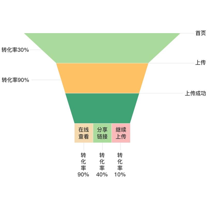提高核心路徑的轉化率,如提高首頁到上傳按鈕點擊的轉化率。