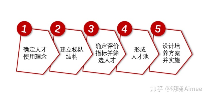 怎樣選拔化繁為簡,快速建立人才梯隊可以分為5個基本步驟:確定人才使用理念、建立梯隊結構、確定評價指標并篩選人才、形成人才池、設計培養方案并實施。