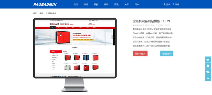 使用創(chuàng)新互聯(lián)建站系統(tǒng)、模板建站軟件和壓縮機(jī)制造企業(yè)響應(yīng)式網(wǎng)站模板T1379,就可以在線開通快速模板建站,搭建一個(gè)功能完善的壓縮機(jī)制造企業(yè)響應(yīng)式網(wǎng)站。