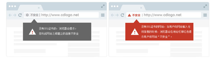 網站沒有https,首先很多瀏覽器就會給你的網站訪客提示網站“不安全”,這對網站來說,無疑于權威部門說你的企業不可信,對網站用戶體驗來講,是一種致命的打擊。