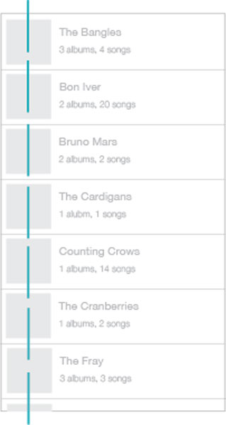 軸是專輯列表的一個簡單的例子在iTunes應用。這種設計,垂直軸整齊的專輯封面一致在屏幕的左邊。