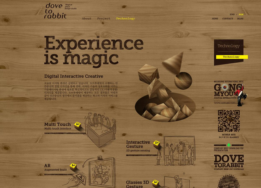 看看上面這個(gè)網(wǎng)站,導(dǎo)航欄并沒(méi)有像其他網(wǎng)站一樣一長(zhǎng)條橫跨網(wǎng)站頂部,導(dǎo)航欄的項(xiàng)目只是安靜地置于右上角。由于不存在更多的下拉菜單,所以也沒(méi)有更多的層。菜單的顏色也巧妙地融入到背景中。