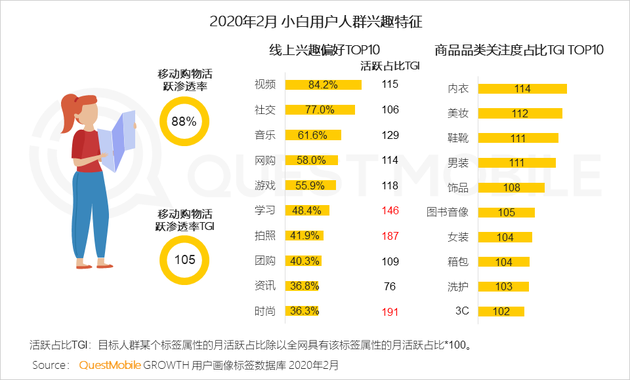 多為職場女性,收入高,線上興趣廣泛且非常活躍,網購頻繁,是當前電商的優質核心用戶。