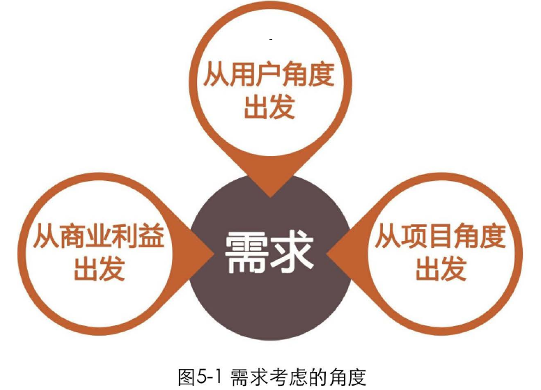 當然,再好的需求也要有開發人員的配合,要保證在時間允許的前提下項目可實現才行。因此在實際工作中,需要從商業、用戶、技術三個角度來平衡考慮需求。缺少了任何一個角度都是十分危險的,項目都有可能以失敗告終,如圖5-1所示。