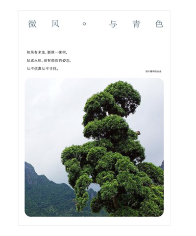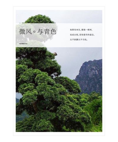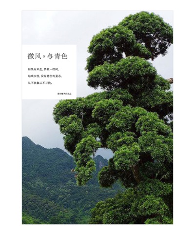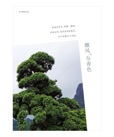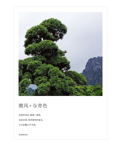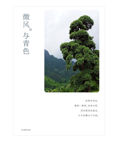 △ 將樹(shù)作為主體放在黃金分割的位置,對(duì)稱的地方安排文字區(qū)域,有視覺(jué)連貫性的作用。