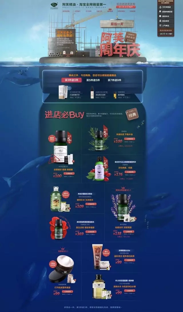 店鋪活動首頁或專題頁,其目的就是要吸引眼球要脫穎而出,而且店鋪之間設計師的水平相差挺大的,你的創意很贊就很容易突穎而出了,至于怎么玩其實也是隨意了,比如阿芙的: