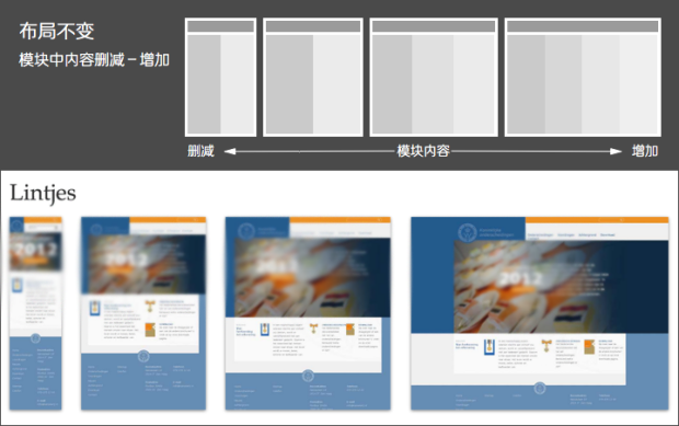很多時候,單一方式的布局響應無法滿足理想效果,需要結合多種組合方式,但原則上盡可能時保持簡單輕巧,而且同一斷點內(發生布局改變的臨界點稱之為斷點)保持統一邏輯。否則頁面實現得太過復雜,也會影響整體體驗和頁面性能。