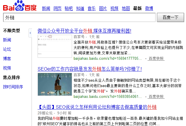 是不是就能看到很多最新“婚紗攝影”在論壇里面發布外鏈了,非常優質資源而且收錄很也快,高效、免費。學會使用這一招再也不用擔心找不到優質的外鏈資源了。