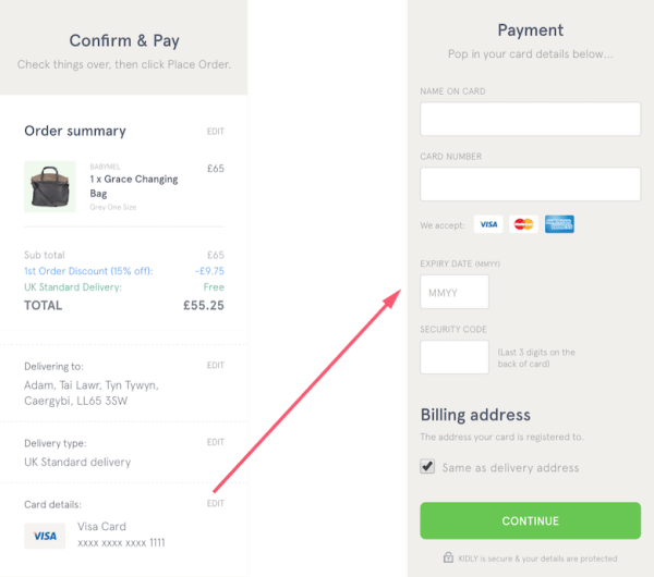 比如,假設我們儲存了用戶的支付信息,我們可以直接跳過那一頁,直接帶他們去“結賬確認”頁面。這會減少阻礙,提升轉化率。