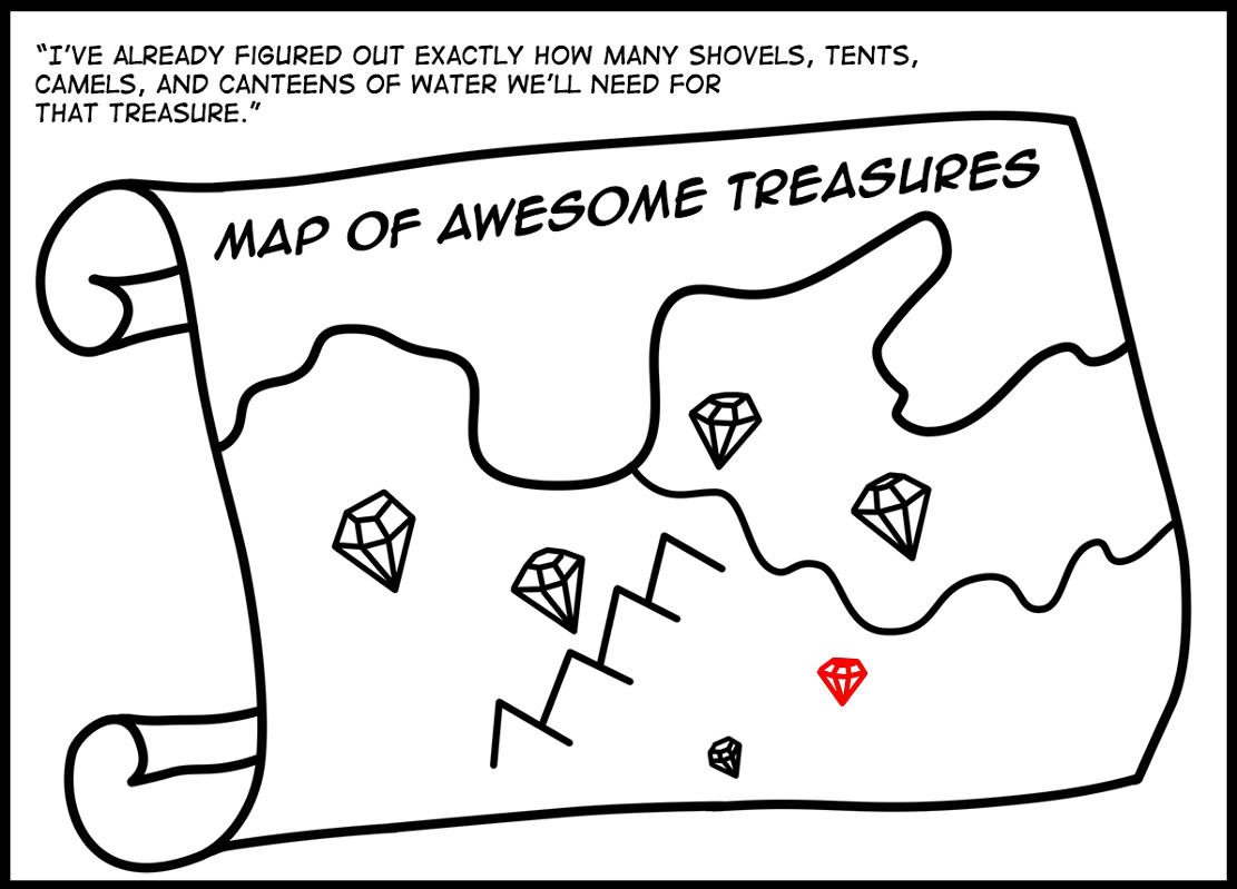 這件事情就像制作泰坦尼克號的模型一樣。設計師們在安置甲板上的躺椅上耗費了太長的時間,他們還不知道這條船上有許多房間、餐廳、鍋爐房、歌劇院、控制室。那些更好的創意和點子在距離他們遠的地方,但是他們關注的卻一直是眼前的甲板和躺椅。