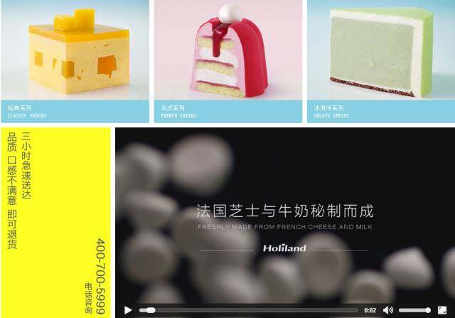 蛋糕品牌好利來在做自己的官網時,除了設計清新甜美的展示頁面,還為經典產品“半熟芝士”和“蜂蜜蛋糕”拍攝了制作視頻,使消費者目睹蛋糕的制作過程,極易產生信任與好感。此外,三小時急速送達、不滿意可退貨、門店新品試吃等都成為好利來的標簽,無限吸粉。