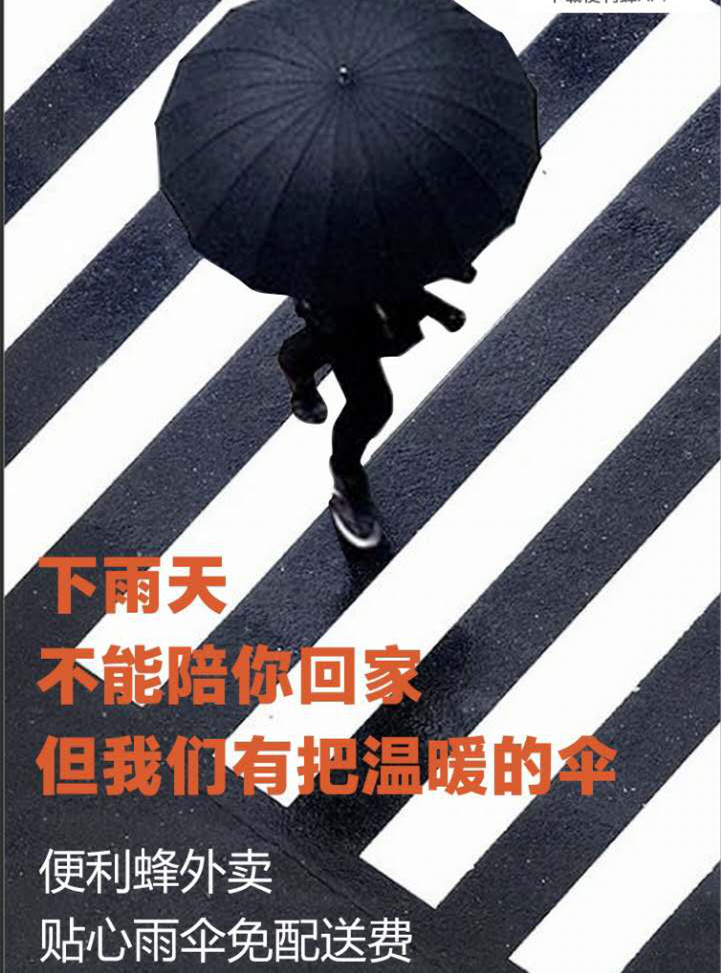 ▲下雨天,便利蜂借勢將雨傘內容化為海報