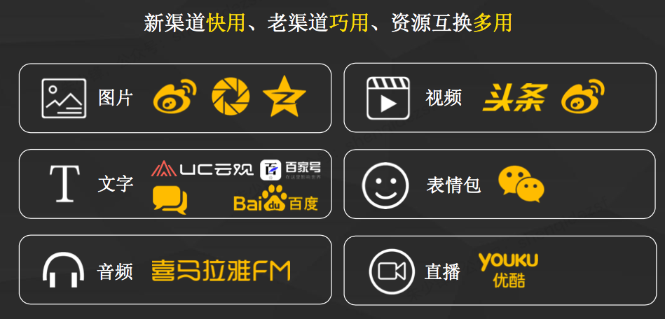 很多人認為新媒體就是微博微信,發完就結束了。實際上我們要做的內容是多種形式的,渠道選擇也非常多,這一點是今天重點講的。