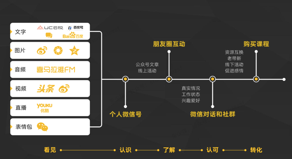 看見(渠道),大公司的平臺導流。作為一個創業公司,我們的資源和錢都是比較少的。如果我們只通過自己的流量手段去做營銷是非常困難的。因為我們的流量非常小,做這個事情就非常難。那么我們要借力打力,我們經歷了非常多的新渠道的內容稀缺紅利,比如喜馬拉雅缺乏優質的音頻,如果你有,那就能得到非常好的效果。