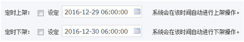 設(shè)置完商品基本信息之后,設(shè)置上下架時(shí)間,亦可直接上架發(fā)布。和商品相關(guān)的活動(dòng),一旦商品下架,活動(dòng)將失效,無法購買。搜索、篩選的商品范圍都是在上架的商品范圍進(jìn)行。