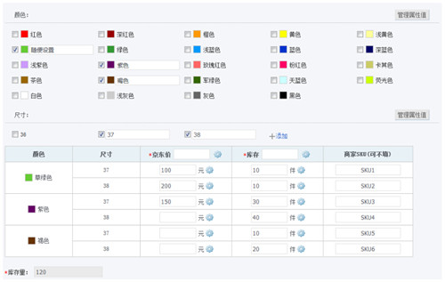 JD規(guī)格、價(jià)格、庫存、SKU設(shè)置頁面