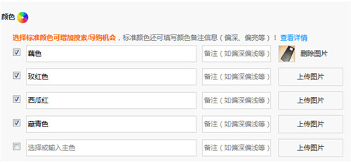 淘寶不同顏色上傳具體的縮略圖,京東可上傳多圖。