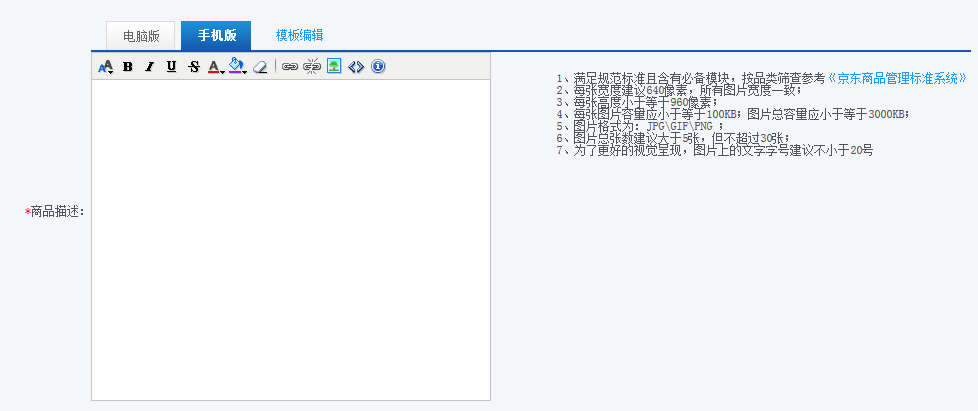 商品詳情頁現(xiàn)在一般會(huì)區(qū)分電腦版和手機(jī)版,由于兩者的使用場(chǎng)景和設(shè)備不同,側(cè)重點(diǎn)也不相同。為了更好的展示產(chǎn)品特點(diǎn),可提供不同的產(chǎn)品詳情模板,亦可支持不同的富文本編輯。