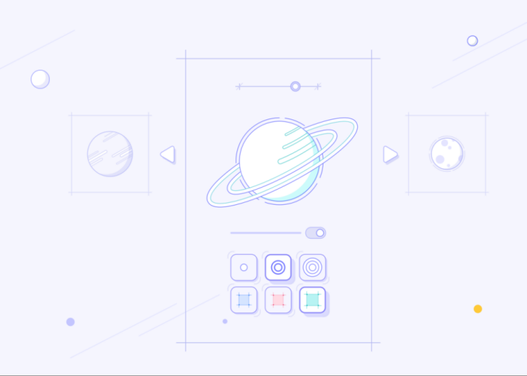 在進行調整之后,我們得到了最終的版本。第三副圖當中的UI元素和第三副圖的插畫充分地融合到了一起,而配色則采用了集中明亮但是并不富有侵略性的色彩,粉紅、黃色、綠松石色以及紫色。