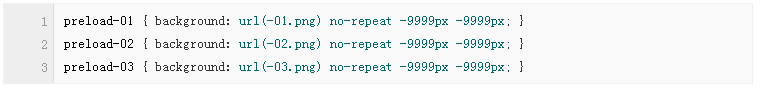 將這三個ID選擇器應(yīng)用到(X)HTML元素中,我們便可通過CSS的background屬性將圖片預(yù)加載到屏幕外的背景上。只要這些圖片的路徑保持不變,當(dāng)它們在Web頁面的其他地方被調(diào)用時,瀏覽器就會在渲染過程中使用預(yù)加載(緩存)的圖片。簡單、高效,不需要任何JavaScript。