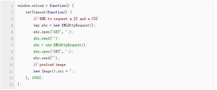 上面代碼預(yù)加載了“preload.js”、“preload.css”和“preload.png”。1000毫秒的超時是為了防止腳本掛起,而導(dǎo)致正常頁面出現(xiàn)功能問題。